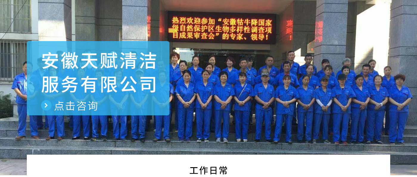 安徽天賦清潔服務有限公司是的服務型企業(yè),主要從事道路清潔、物業(yè)托管保潔、工程開荒、高空作業(yè)、地毯清洗、石材翻新等多項服務為一體的環(huán)保型清潔公司。公司管理機制完善,清潔作業(yè)經驗豐富,擁有技術力量,嚴格實行崗前培訓—崗中督查—上崗在培訓的員工管理措施,憑著優(yōu)良的清潔質量和嚴格的督查管理,為眾多企事業(yè)單位、醫(yī)院、酒店、廠區(qū)商場、物業(yè)、道路、學校、公園等提供后勤清潔服務。在業(yè)內擁有良好的口碑。工作人員,服務態(tài)度優(yōu),竭力為客戶提供好的保潔服務。安徽天賦清潔服務有限公司:致力于長期合作關系,提高服務質量,提供高標準的清潔服務。公司的經營理念:為營造一個更清潔、亮麗的生活和工作環(huán)境而努力!“誠信”是公司成功保證。“客戶至上,信譽為首”是公司宗旨。高標準提供服務,維護客戶利益、形象,是我始終不渝的目標。